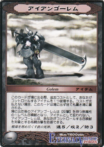 場に出た後のアイアンゴーレムは【反撃】を持つ属性の1レベル召喚獣となり、アイテムとして扱われない。