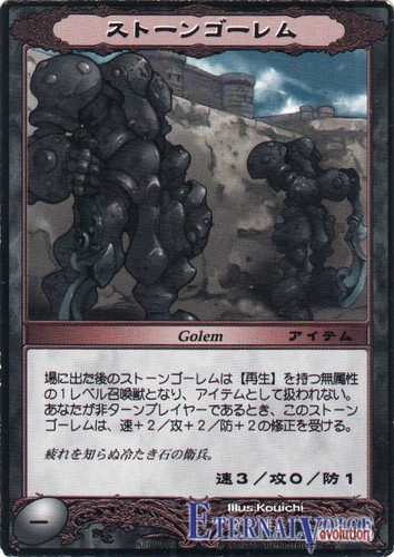 場に出た後のストーンゴーレムは【再生】を持つ属性の1レベルの召喚獣となり、アイテムとして扱わない。