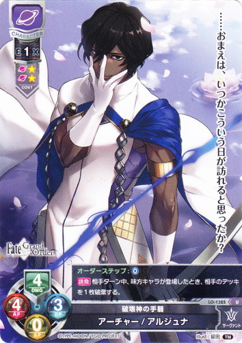 ![]() ![]() | LO-1385 破壊神の手翳 アーチャー/アルジュナ キャラクター Ver.Fate/Grand Order 3.0 U 属性:宙 EX:1 コスト:宙宙無無 タイプ:サーヴァント ブランド:TM AP:4 DP:3 SP:0 DMG:4 オーダーステップ:(0) 【誘発】相手ターン中、味方キャラが登場したとき、相手のデッキを1枚破棄する。 ・・・・・・おまえは、いつかこういう日が訪れると思ったか? illust:鉦田 作品名:Fate/Grand Order スターターデッキ収録 |