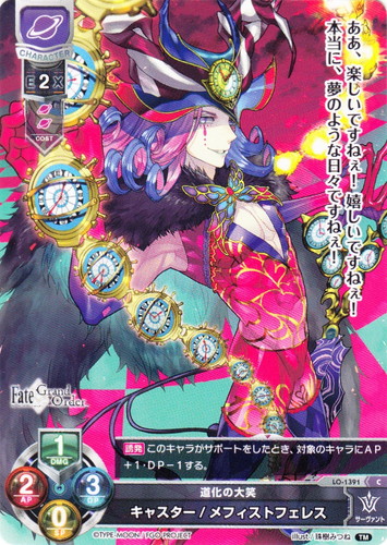 ![]() ![]() | LO-1391 道化の大笑 キャスター/メフィストフェレス キャラクター Ver.Fate/Grand Order 3.0 C 属性:宙 EX:2 コスト:宙宙 タイプ:サーヴァント ブランド:TM AP:2 DP:3 SP:0 DMG:1 【誘発】このキャラがサポートをしたとき、対象のキャラにAP+1・DP+1する。 ああ、楽しいですねぇ!嬉しいですねぇ! 本当に、夢のような日々ですねぇ! illust:珠樹みつね 作品名:Fate/Grand Order スターターデッキ収録 |