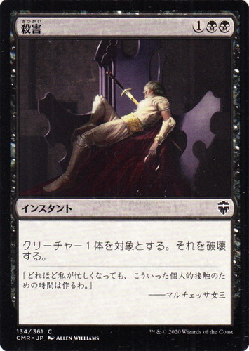 ![]() ![]() | CMR 134 殺害 インスタント 統率者レジェンズ C 色:黒 マナコスト:(1)(黒)(黒) クリーチャー1体を対象とする。それを破壊する。 「どれほど私が忙しくなっても、こういった個人的接触のための時間は作るわ。」 ――マルチェッサ女王 illust:ALLEN WILLIAMS |