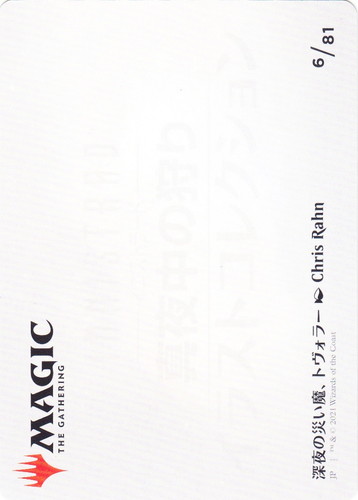 ![]() ![]() | MID 06 深夜の災い魔、トヴォラー・アートカード アートカード イニストラード:真夜中の狩り illust:Chris Rahn |