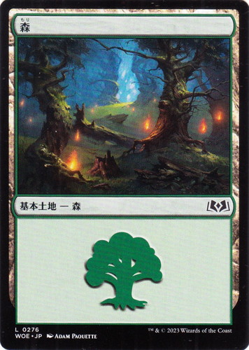 ![]() ![]() | WOE 0276 森 基本土地 エルドレインの森 L 色:緑 サブタイプ:森 illust:ADAM PAQUETTE |