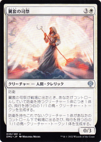 ![]() ![]() | MH3 0264 著名な妖術師 クリーチャー モダンホライゾン3 U 色:白 サブタイプ:人間・ウィザード マナコスト:(1)(白) パワー:1 タフネス:2 透かしシンボル:ジャンプスタート20 これでないクリーチャー1体があなたのコントロール下で戦場に出るたび、1点のライフを得る。 (4)(白), [T]:あなたがコントロールしていてこれでないクリーチャー1体を対象とする。それを追放し、その後、オーナーのコントロール下で戦場に戻す。 illust:NILS HAMM |