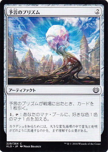 ![]() ![]() | KLD 229 予言のプリズム アーティファクト カラデシュ C 色:無色 マナコスト:(2) 予言のプリズムが戦場に出たとき、カードを1枚引く。 (1), [T]:あなたのマナ・プールに、好きな色1色のマナ1点を加える。 カラデシュを知るためには、大きな霊気循環の中で霊気と発明がどのように流通するのかを、まず理解する必要がある。 illust:NOAH BRADLEY |