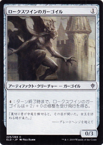![]() ![]() | ELD 225 ロークスワインのガーゴイル アーティファクト・クリーチャー エルドレインの王権 C 色:無色 サブタイプ:ガーゴイル マナコスト:(1) パワー:0 タフネス:3 (4):ターン終了時まで、ロークスワインのガーゴイルは+2/+0の修整を受け飛行を得る。 「裏切り者が中庭を横切ると、その目が開いた。女王を訪ねる時が来た。」 ――グレートヘンジを超えて illust:NILS HAMM |
