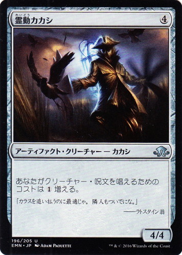 ![]() ![]() | EMN 196 霊動カカシ アーティファクト・クリーチャー 異界月 U 色:無色 サブタイプ:カカシ マナコスト:(4) パワー:4 タフネス:4 あなたがクリーチャー・呪文を唱えるためのコストは(1)増える。 「カラスを追い払うのに最適じゃ。隣人もついでにな。」 ――ラトスタイン翁 illust:ADAM PAOUETTE |