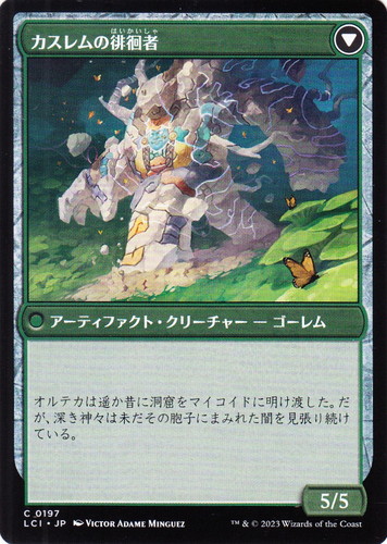 ![]() ![]() | LCI 0197 カスレムの徘徊者 アーティファクト・クリーチャー イクサラン:失われし洞窟 C 色:緑 サブタイプ:ゴーレム パワー:5 タフネス:5 両面:カスレムの石樹 オルテカは遥か昔に洞窟をマイコイドに明け渡した。だが、深き神々は未だその胞子にまみれた闇を見張り続けている。 illust:VICTOR ADAM MINGUEZ |