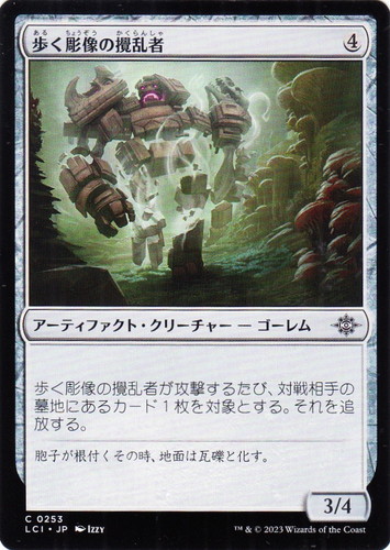 ![]() ![]() | LCI 0253 歩く彫像の攪乱者 アーティファクト・クリーチャー イクサラン:失われし洞窟 C 色:無色 サブタイプ:ゴーレム マナコスト:(4) パワー:3 タフネス:4 歩く彫像の攪乱者が攻撃するたび、対戦相手の墓地にあるカード1枚を対象とする。それを追放する。 胞子が根付くその時、地面は瓦礫と化す。 illust:IZZY |