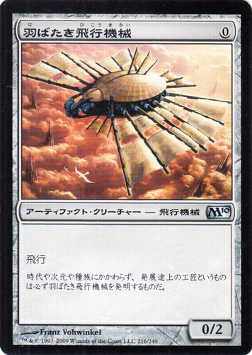 ![]() ![]() | M10 216 羽ばたき飛行機械 アーティファクト・クリーチャー 基本セット2010 U 色:無色 サブタイプ:飛行機械 マナコスト:(0) パワー:0 タフネス:2 飛行 時代や次元や種族にかかわらず、発展途上の工匠というものは必ず羽ばたき飛行機械を発明するものだ。 illust:Franz Vohwinkel |