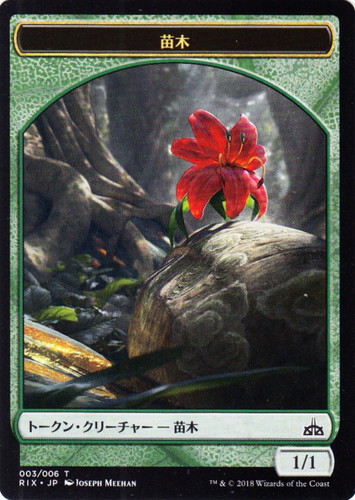 ![]() ![]() | RIX T003 苗木・トークン トークン・クリーチャー イクサランの相克 T 色:緑 サブタイプ:苗木 パワー:1 タフネス:1 illust:JOSEPH MEEHAN |