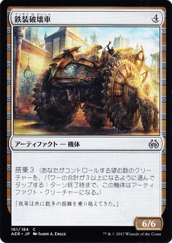 ![]() ![]() | AER 161 鉄装破壊車 アーティファクト 霊気紛争 C 色:無色 サブタイプ:機体 マナコスト:(4) パワー:6 タフネス:6 搭乗3(あなたがコントロールする望む数のクリーチャーを、パワーの合計が3以上になるように選んでタップする:ターン終了時まで、この機体はアーティファクト・クリーチャーになる。) 「我等は共に幾多の困難を乗り越えてきた。」 illust:JASON A. ENGLE |