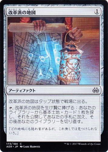 ![]() ![]() | AER 173 改革派の地図 アーティファクト 霊気紛争 C 色:無色 マナコスト:(1) 改革派の地図はタップ状態で戦場に出る。 [T], 改革派の地図を生け贄に捧げる:あなたのライブラリーから基本土地・カード1枚を探し、それを公開してあなたの手札に加え、その後あなたのライブラリーを切り直す。 「どの地域にも隠れ家があるが、これ無しでは見つけられないさ。」 illust:LAKE HURWITZ |