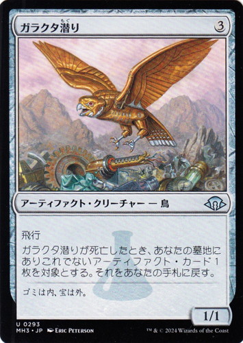 ガラクタ潜りが死亡したとき、あなたの墓地にありこれでないアーティファクト・カード1枚を対象とする。それをあなたの手札に戻す。