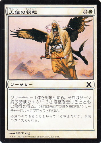 ![]() ![]() | NEM 001 天使の好意 インスタント ネメシス U 色:白 マナコスト:(3)(白) あなたが平地をコントロールしている場合、あなたは天使の好意のマナ・コストを支払う代わりに、あなたがコントロールするアンタップ状態のクリーチャー1体をタップしてもよい。 天使の好意は戦闘中にしかプレイできない。 飛行を持つ4/4の白の天使クリーチャー・トークンを1個場に出す。ターン終了時、そのトークンをゲームから取り除く。 illust:Paolo Parente |