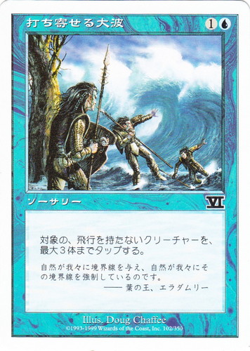![]() ![]() | 6ED 101 嵐雲のカラス クリーチャー 基本セット 第6版 クラシック C 色:青 サブタイプ:鳥 マナコスト:(1)(青) パワー:1 タフネス:2 飛行 嵐雲のカラスの舞い降りるとき、冬はまだ終わらない。嵐雲のカラスの立ち去るとき、夏が始まる。 illust:Una Fricker |