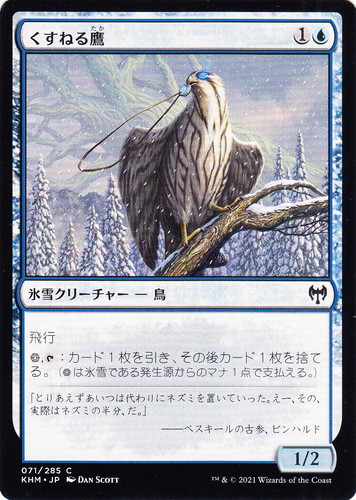 ![]() ![]() | M20 079 イーヴォ島の管理人 クリーチャー 基本セット2020 U 色:青 サブタイプ:鳥・ウィザード マナコスト:(2)(青) パワー:2 タフネス:2 飛行 あなたが飛行を持つクリーチャー・呪文を唱えるためのコストは(1)少なくなる。 イーヴォ島では、身軽な手練れのエイヴンが支配階級のスフィンクスの意向を強制している。 illust:NILS HAMM |