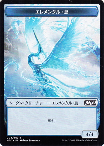 ![]() ![]() | M20 T004 エレメンタル・鳥・トークン トークン・クリーチャー 基本セット2020 T 色:青 サブタイプ:エレメンタル・鳥 パワー:4 タフネス:4 飛行 illust:JANA SCHIRMER |