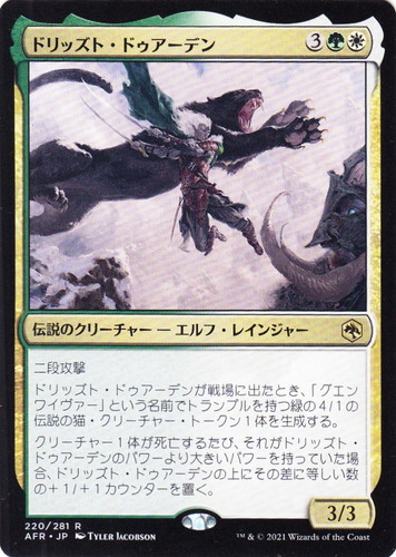 ![]() ![]() | M13 184 クウィリーオンのドライアド クリーチャー 基本セット2013 R 色:緑 サブタイプ:ドライアド マナコスト:(1)(緑) パワー:1 タフネス:1 あなたが白か青か黒か赤の呪文を1つ唱えるたび、クウィリーオンのドライアドの上に+1/+1カウンターを1個置く。 「自然外の影響に順応した自然の力を侮るべからず。」 ――マローの魔術師モリモ illust:Todd Lockwood |