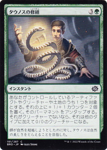 ![]() ![]() | AER 114 造命師の贈り物 インスタント 霊気紛争 U 色:緑 マナコスト:(3)(緑) クリーチャー1体を対象とし、それの上に+1/+1カウンターを1個置く。その後、あなたがコントロールする+1/+1カウンターが置かれている各クリーチャーの上に+1/+1カウンターをそれぞれ1個置く。 優れた技師には、問題が解決していてもそれがわかる。 illust:WINONA NELSON |