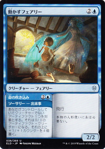 ![]() ![]() | ELD 038 動かすフェアリー クリーチャー エルドレインの王権 U 色:青 サブタイプ:フェアリー・出来事 マナコスト:(2)(青) パワー:2 タフネス:2 飛行 命の吹き込み (2)(青) ソーサリー―出来事 あなたがコントロールしていてクリーチャーでないアーティファクト1つを対象とする。それは0/0のアーティファクト・クリーチャーになる。それの上に+1/+1カウンターを4個置く。 本物の人形使いに糸は必要ない。 illust:JOSEPH MEEHAN |