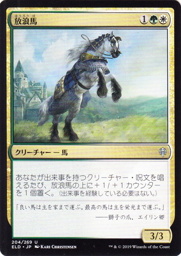 ![]() ![]() | OGW 127 ベイロスの仔 クリーチャー ゲートウォッチの誓い U 色:緑 サブタイプ:ビースト マナコスト:(1)(緑) パワー:3 タフネス:1 ベイロスの仔の上に+1/+1カウンターが置かれているかぎり、これはトランプルを持つ。 若いベイロスには破壊が遊びである。成長すると遊ぶことは減るが、破壊が減ることはない。 illust:STEVE PRESCOTT |
