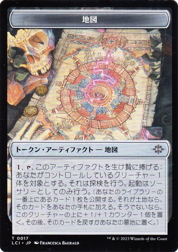![]() ![]() | LCI T0017 地図・トークン トークン・アーティファクト イクサラン:失われし洞窟 T 色:無色 サブタイプ:地図 (1), [T], このアーティファクトを生け贄に捧げる:あなたがコントロールしているクリーチャー1体を対象とする。それは探検を行う。起動はソーサリーとしてのみ行う。(あなたのライブラリーの一番上にあるカード1枚を公開する。それが土地なら、そのカードをあなたの手札に加える。そうでないなら、このクリーチャーの上に+1/+1カウンター1個を置く。その後、そのカードを戻すかあなたの墓地に置く。) illust:FRANCESCA BAERALD |