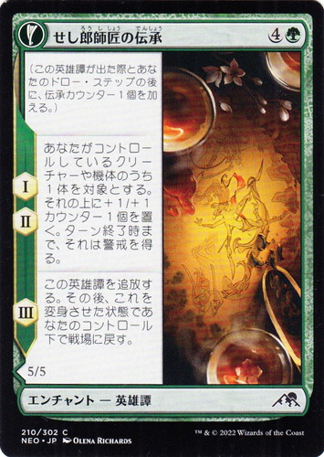 ![]() ![]() | WAR 158 瀬戸際の勇気 ソーサリー 灯争大戦 C 色:緑 マナコスト:(2)(緑) クリーチャー1体を対象とし、それの上に+1/+1カウンターを1個置く。その後、増殖を行う。(望む数のパーマネントやプレイヤーを選び、その後すでにそこにあるカウンター1種類につき、そのカウンターをもう1個与える。) カードを1枚引く。 「父のおかげで、私は戦い方を知っている。父は戦う理由も教えてくれた。」 illust:MICAH EPSTEIN |