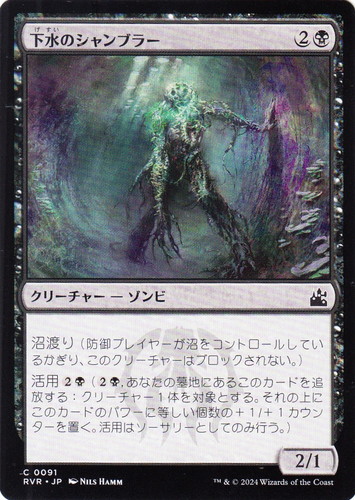 ![]() ![]() | RVR 0091 下水のシャンブラー クリーチャー ラヴニカ・リマスター C 色:黒 サブタイプ:ゾンビ マナコスト:(2)(黒) パワー:2 タフネス:1 透かしシンボル:ゴルガリ 沼渡り(防御プレイヤーが沼をコントロールしているかぎり、このクリーチャーはブロックされない。) 活用(2)(黒)((2)(黒), あなたの墓地にあるこのカードを追放する:クリーチャー1体を対象とする。それの上にこのカードのパワーに等しい個数の+1/+1カウンターを置く。活用はソーサリーとしてのみ行う。) illust:NILS HAMM |