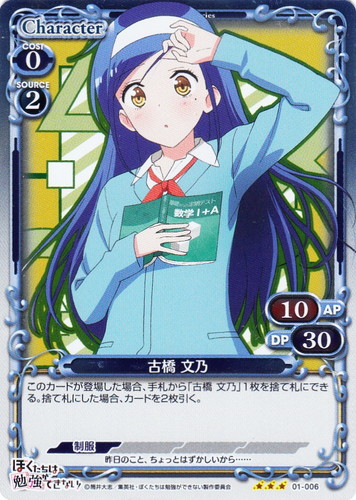 このカードが登場した場合、手札から「古橋 文乃」1枚を捨て札にできる。捨て札にした場合、カードを2枚引く。