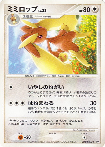 ![]() ![]() | No.102 エリカのタマタマ ポケモン ポケットモンスターカードゲーム ポケモンジム 第2弾 タマムシシティジム エリカ タイプ:草 分類:たね LV:12 HP:40 シンボル:エリカ [無色] たまなげ 10× 自分についているエネルギーの数だけコインを投げ、「おもて」の数×10ダメージ。 [超][無色] サイコキネシス 10+ 相手についているエネルギーカード×10のダメージを追加する。 にげる:[無色] 弱点:炎 たまごポケモン:身長0.4m、体重2.5kg illust:Ken Sugimori |