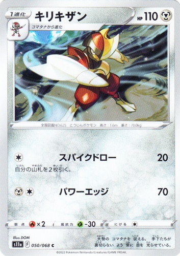 ![]() ![]() | SV4a 123 キリキザン ポケモン スカーレット&バイオレット ハイクラスパック シャイニートレジャーex タイプ:悪 分類:1進化 HP:120 レギュレーション:G コマタナから進化 [悪] ダークカッター 40 [悪][無色] もろはぎり 120 このポケモンにも30ダメージ。 弱点:草×2 にげる:[無色] 全国図鑑NO.0625 とうじんポケモン 高さ:1.6m 重さ:70.0kg コマタナを 率いて 群れを 成す。 縄張りを 賭けて 争い 負けた 群れは 吸収されていくのだ。 illust:Hideki Ishikawa |
