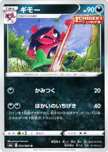 ![]() ![]() | SV4a 110 キラーメ ポケモン スカーレット&バイオレット ハイクラスパック シャイニートレジャーex (ミラー) タイプ:闘 分類:たね HP:40 レギュレーション:G [闘] かくせい このポケモンから進化するカードを、自分の山札から1枚選び、このポケモンにのせて進化させる。そして山札を切る。 弱点:草×2 にげる:[無色] 全国図鑑NO.0969 こうせきポケモン 高さ:0.7m 重さ:8.0kg 洞窟の 壁から 栄養分を 吸収。 毒の 結晶で できた 花びらを 身にまとう。 illust:Mizue |