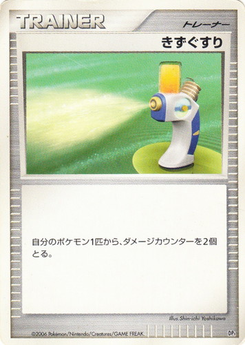 ![]() ![]() | きずぐすり配合エネルギー エネルギー ポケットモンスターカードゲーム 第4弾 拡張パック ロケット団 ● タイプ:無色 分類:特殊エネルギー 「無色」エネルギー1個ぶんとしてあつかう。このカードを手札から出してポケモンにつける時、そのポケモンのダメージカウンターを1つとりのぞく。 (「無色」エネルギーは、ほかの色のエネルギーのかわりにはならない。ほかの色のエネルギーは「無色」エネルギーのかわりになる。) illust:Keiji Kinebuchi |