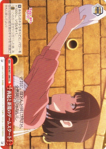 ![]() ![]() | SS/W14-T14 何でもできる クライマックス トライアルデッキ 灼眼のシャナ TD 色:赤 トリガー:ソウル/ソウル 【永】あなたのキャラすべてに、ソウルを+2。 作品名:灼眼のシャナ |