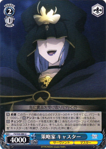 ![]() ![]() | FS/S34-086 策略家 キャスター キャラ ブースターパック Fate/stay night Unlimited Blade Works U 色:青 レベル:2 コスト:1 パワー:4000 ソウル:1 特徴:サーヴァント/マスター トリガー:ソウル 【永】応援 このカードの前のあなたの《マスター》のキャラすべてに、パワーを+1000し、『【自】アンコール[手札のキャラを1枚控え室に置く[]』を与える。 【自】チェンジ[①このカードを控え室に置く]あなたのドローフェイズの始めに、あなたはコストを払ってよい。そうしたら、あなたは自分の控え室の「“英霊” キャスター」を1枚選び、このカードがいた枠に置く。 先に賞品を受け取りに行くの 作品名:Fate/stay night Unlimited Blade Works |