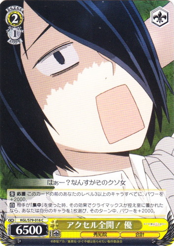 ![]() ![]() | KW/W11-105 “ふらんくり~” クド キャラ トライアルデッキ Angel Beats!&クドわふたー TD 色:青 レベル:0 コスト:0 パワー:1000 ソウル:1 特徴:動物/科学 【永】応援 このカードの前のあなたのキャラすべてに、パワーを+500。 ・・・冗談ですよ。いっつ・あ・あめりかんじょーく 作品名:クドわふたー |