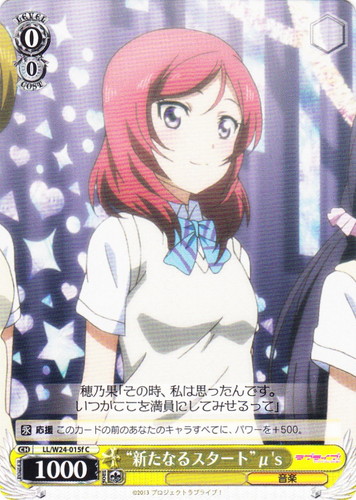 ![]() ![]() | LL/W24-015h “新たなるスタート” μ’s キャラ ブースターパック ラブライブ! C 色:黄 レベル:0 コスト:0 パワー:1000 ソウル:1 特徴:音楽 【永】応援 このカードの前のあなたのキャラすべてに、パワーを+500。 穂乃果「その時、私は思ったんです。いつかここを満員にしてみせるって」 作品名:ラブライブ! School idol project |