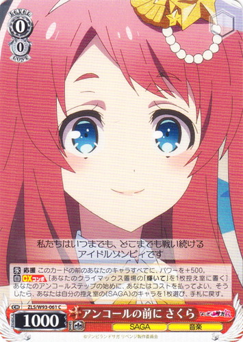 ![]() ![]() | LL/W24-015a “新たなるスタート” μ’s キャラ ブースターパック ラブライブ! C 色:黄 レベル:0 コスト:0 パワー:1000 ソウル:1 特徴:音楽 【永】応援 このカードの前のあなたのキャラすべてに、パワーを+500。 皆さん、今日は本当にありがとうございました! 作品名:ラブライブ! School idol project |