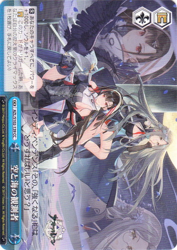 ![]() ![]() | AZL/S102-123 コンコード キャラ ブースターパック アズールレーン C 色:青 レベル:0 コスト:0 パワー:1000 ソウル:1 特徴:艦船/ユニオン 【自】このカードが手札から舞台に置かれた時、あなたは自分の山札を上から2枚まで見て、山札の上に好きな順番で置く。 【自】[手札のクライマックスを1枚控え室に置く]このカードが手札から舞台に置かれた時、あなたはコストを払ってよい。そうしたら、あなたは自分の控え室の《艦船》のキャラを1枚選び、手札に戻す。 指揮官、暇なら足のマッサージでもしてくれていいよ~? 作品名:アズールレーン |