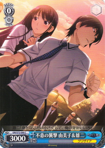 ![]() ![]() | GRI/S72-090 不意の襲撃 由美子&雄二 キャラ ブースターパック グリザイアの果実 C 色:青 レベル:0 コスト:0 パワー:3000 ソウル:1 特徴:グリザイア 雄二「身をなるだけ小さくして、俺の背後にいろ」 作品名:グリザイアの果実 |