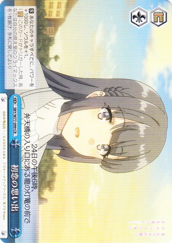![]() ![]() | SBY/W77-099 初恋の思い出 クライマックス ブースターパック 青春ブタ野郎はゆめみる少女の夢を見ない CR 色:青 トリガー:ソウル/ゲート 【永】あなたのキャラすべてに、パワーを+1000し、ソウルを+1。 (【ゲート】:このカードがトリガーした時、あなたは自分の控え室にクライマックスを1枚選び、手札に戻してよい) 24日の午後6時、弁天橋の入り口にある龍の灯篭の前で 作品名:青春ブタ野郎はゆめみる少女の夢を見ない |