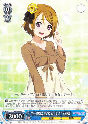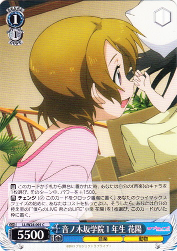 ![]() ![]() | LL/W24-094 新しい自分 花陽 キャラ ブースターパック ラブライブ! C 色:青 レベル:2 コスト:2 パワー:9000 ソウル:2 特徴:音楽/動物 トリガー:ソウル おはよっ! 作品名:ラブライブ! School idol project |