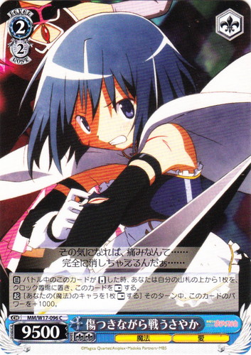 ![]() ![]() | MM/W17-T11 見滝原中学二年生 さやか キャラ トライアルデッキ 魔法少女まどか☆マギカ TD 色:青 レベル:1 コスト:0 パワー:5500 ソウル:1 特徴:魔法/愛 ・・・・・・昨日の続きかよ? 作品名:魔法少女まどか☆マギカ |