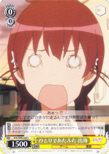 ![]() ![]() | SHS/W71-025 突然の再会 出海 キャラ ブースターパック 冴えない彼女の育てかた♭ C 色:黄 レベル:1 コスト:0 パワー:5500 ソウル:1 特徴:ゲーム/漫画 来ちゃいました~ 作品名:冴えない彼女の育てかた♭ |