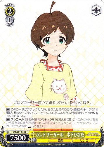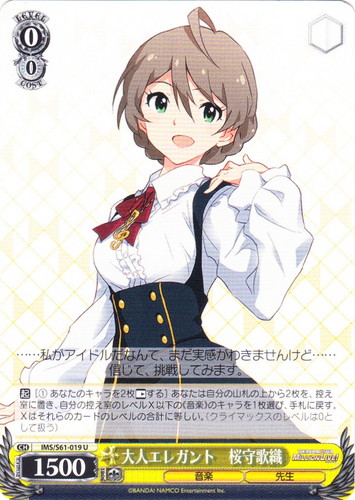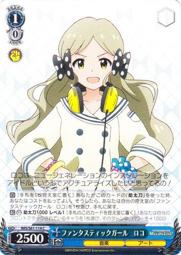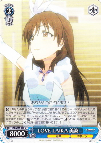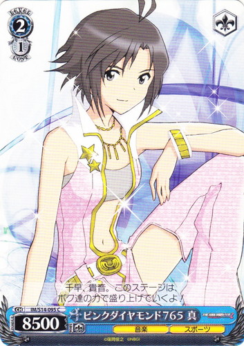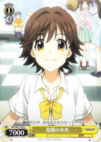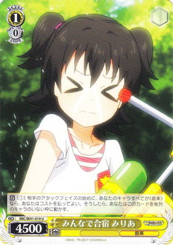 ![]() ![]() | IMS/S93-075 コットンキャンディバス 矢吹可奈 キャラ ブースターパック アイドルマスター ミリオンライブ! Welcome to the New St@ge C 色:赤 レベル:1 コスト:1 パワー:2000 ソウル:1 特徴:音楽/歌 トリガー:ソウル 【永】あなたのレベルが2以上なら、このカードは次の能力を得る。『【起】[①このカードを控え室に置く]あなたは自分の手札の「いつでもオンステージ! 春日未来」を1枚まで選び、このカードがいた枠に置く。』 【永】応援 このカードの前のあなたの《音楽》のキャラすべてに、パワーを+1000。 【起】[このカードを「レスト」する]あなたは自分の山札を上から2枚まで見て、山札の上に好きな順番で置く。 どれみふぁそらしど、どそらしど♪ 鍵盤の上で踊れるなんて、夢みたい~。 作品名:アイドルマスター ミリオンライブ! |