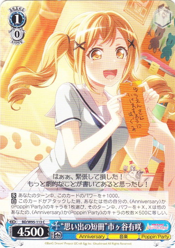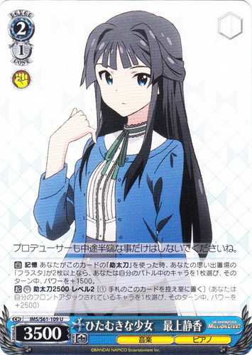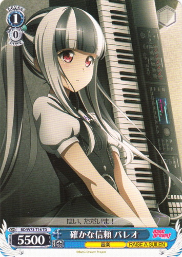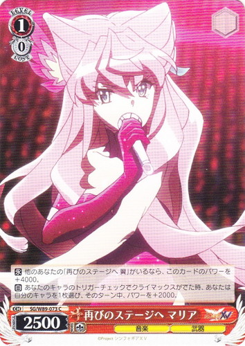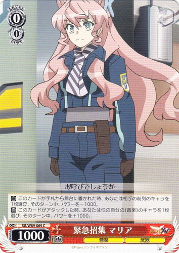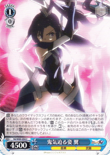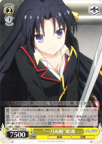 ![]() ![]() | SG/W19-T09 奏を想う翼 キャラ トライアルデッキ 戦姫絶唱シンフォギア TD 色:青 レベル:1 コスト:0 パワー:5500 ソウル:1 特徴:音楽/武器 作品名:戦姫絶唱シンフォギア |