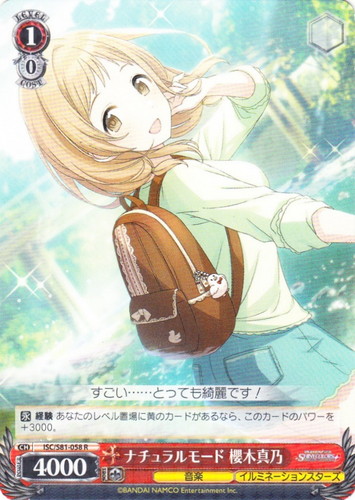 ![]() ![]() | ISC/S81-096 サンセットスカイパッセージ 櫻木真乃 キャラ ブースターパック アイドルマスター シャイニーカラーズ U 色:青 レベル:0 コスト:0 パワー:1000 ソウル:1 特徴:音楽/イルミネーションスターズ 【永】経験 あなたのレベル置場のカードのレベルの合計が1以上なら、このカードのパワーを+1000し、このカードは次の能力を得る。『【自】[このカードを控え室に置く]あなたのクライマックスフェイズの始めに、あなたはコストを払ってよい。そうしたら、あなたは自分の控え室の「ナチュラルモード 櫻木真乃」を1枚選び、このカードがいた枠に置く。』 【自】このカードが手札から舞台に置かれた時、あなたは相手のキャラを1枚まで選び、思い出にし、相手は自分の思い出置場のそのキャラを、舞台の好きな枠に置く。 スタッカート。空を渡るいろたち 作品名:アイドルマスター シャイニーカラーズ |