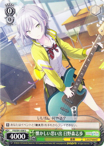 ![]() ![]() | PJS/S91-038 懐かしい思い出 日野森志歩 キャラ ブースターパック プロジェクトセカイ カラフルステージ! feat. 初音ミク U 色:緑 レベル:0 コスト:0 パワー:4000 ソウル:1 特徴:音楽/Leo/need 【永】あなたはイベントと『助太刀』を手札からプレイできない。 いいね。何やる? 作品名:プロジェクトセカイ カラフルステージ! feat. 初音ミク |