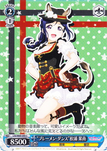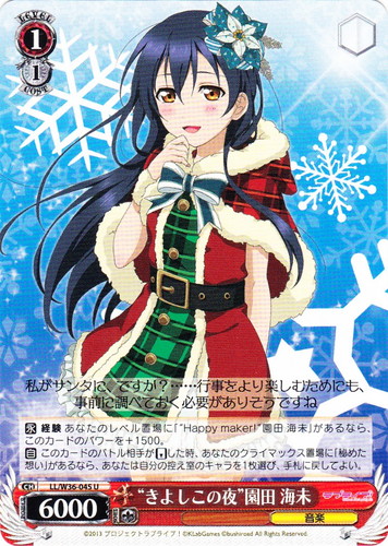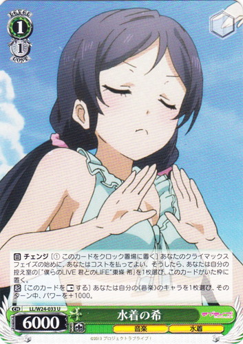 ![]() ![]() | LL/W24-043 メイド服の希 キャラ ブースターパック ラブライブ! C 色:緑 レベル:1 コスト:0 パワー:5500 ソウル:1 特徴:音楽/メイド 作品名:ラブライブ! School idol project |
